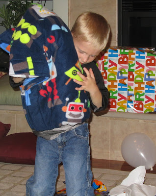 The following weekend was the real Halloween. My dad invited us to his work to go trick-or-treating, and man do they give good candy! Here's the superheros... Batman (Bradley), Robin (Nathan), and Grandma. :)