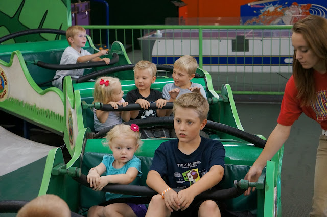 I think it's funny that neither of the little girls will hold on during this ride. Kayee is busy covering her ears...